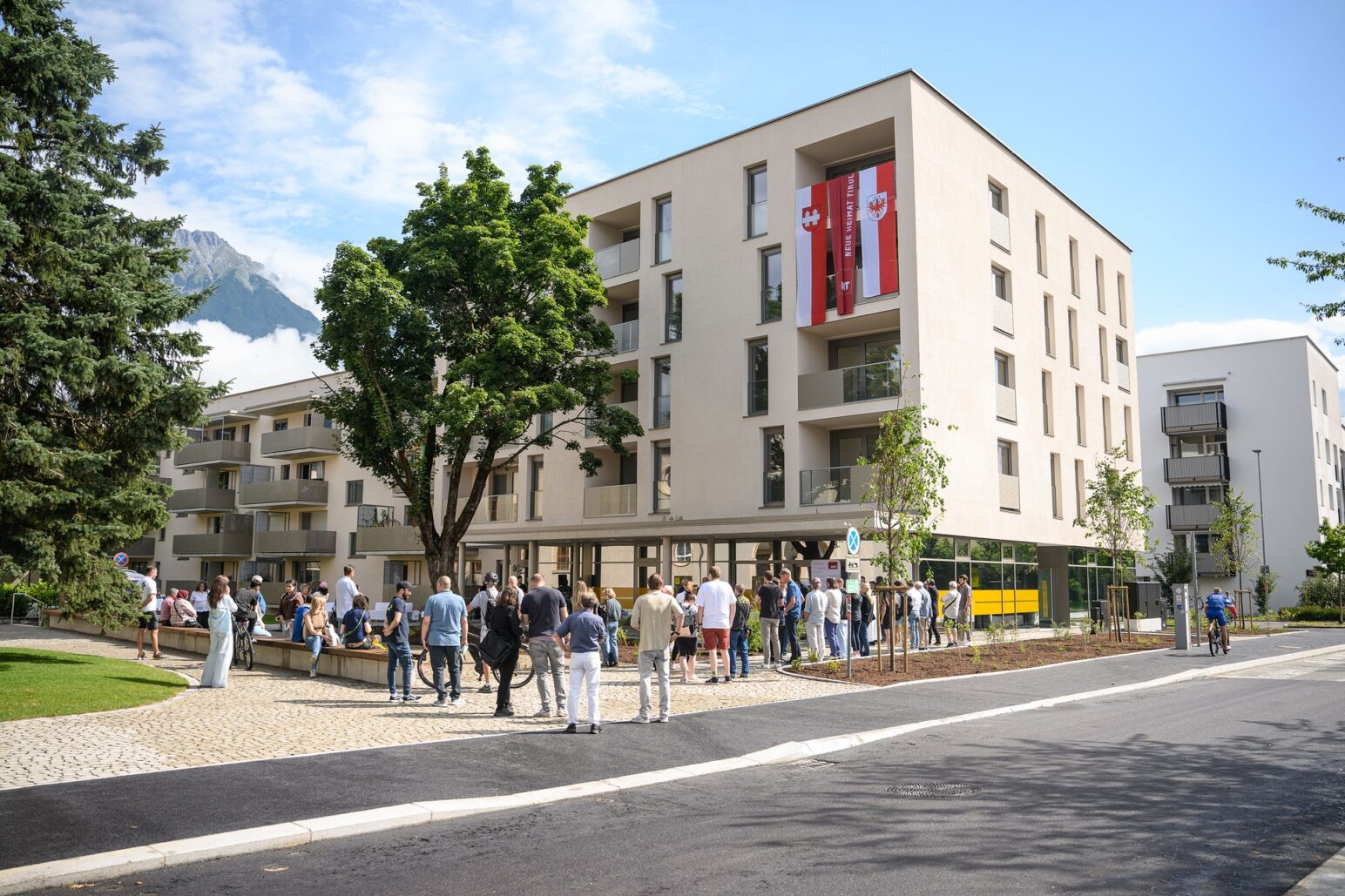 „Insgesamt wurden am Standort 476 neue und leistbare Wohnungen, zwei Gewerbeeinheiten, ein Büro der Diözese und eine Kinderkrippe realisiert. Damit handelt es sich um eines der größten Wohnbauvorhaben in den letzten Jahren“, freut sich Bürgermeister Johannes Anzengruber. Der letzte Baukörper an der Ecke Türingstraße/Pradlerstraße wurde von dem gemeinnützigen Bauträger NEUE HEIMAT TIROL gemeinsam mit der Innsbrucker Stadtbau nach den Plänen des Büros Architekturhalle umgesetzt.