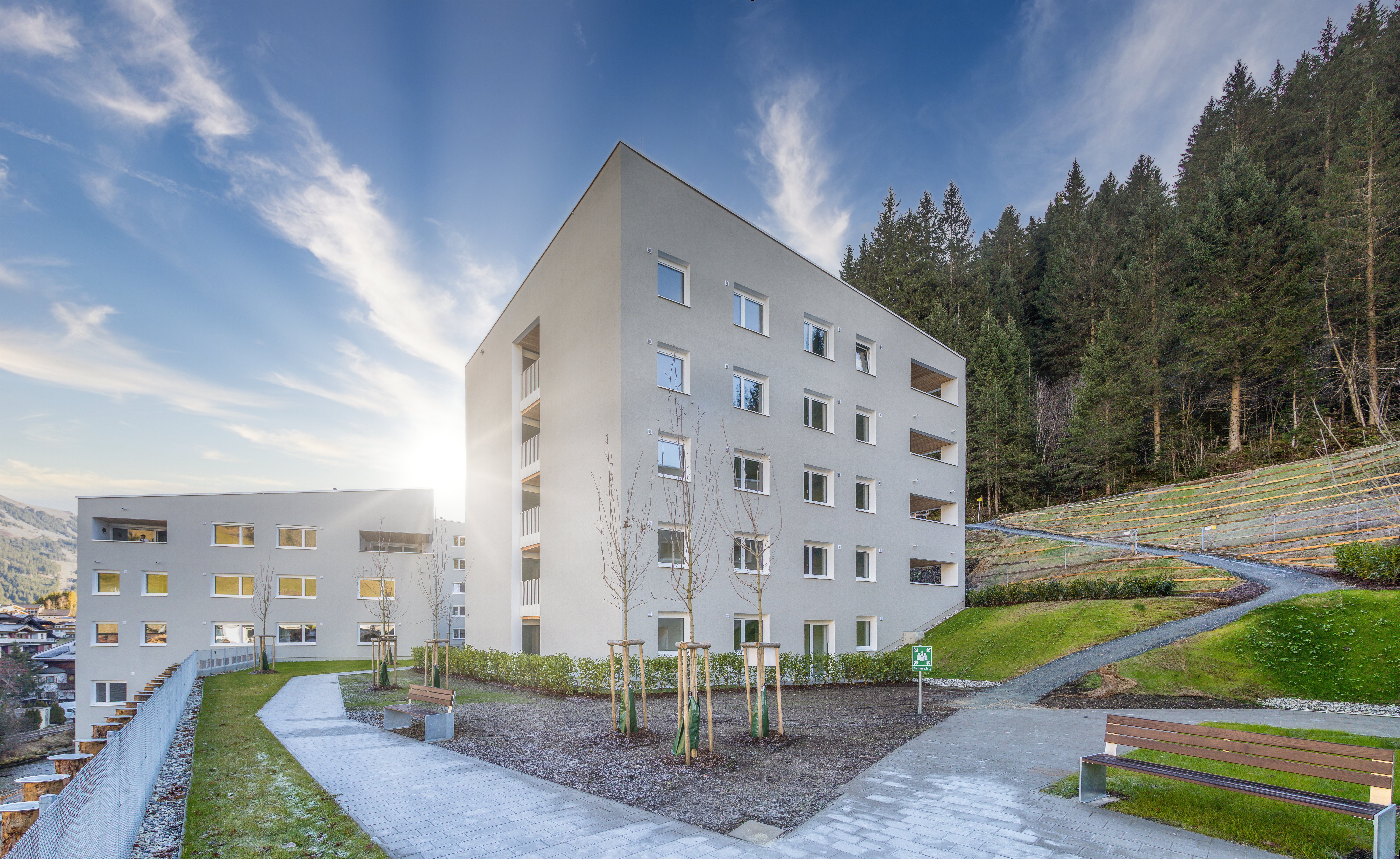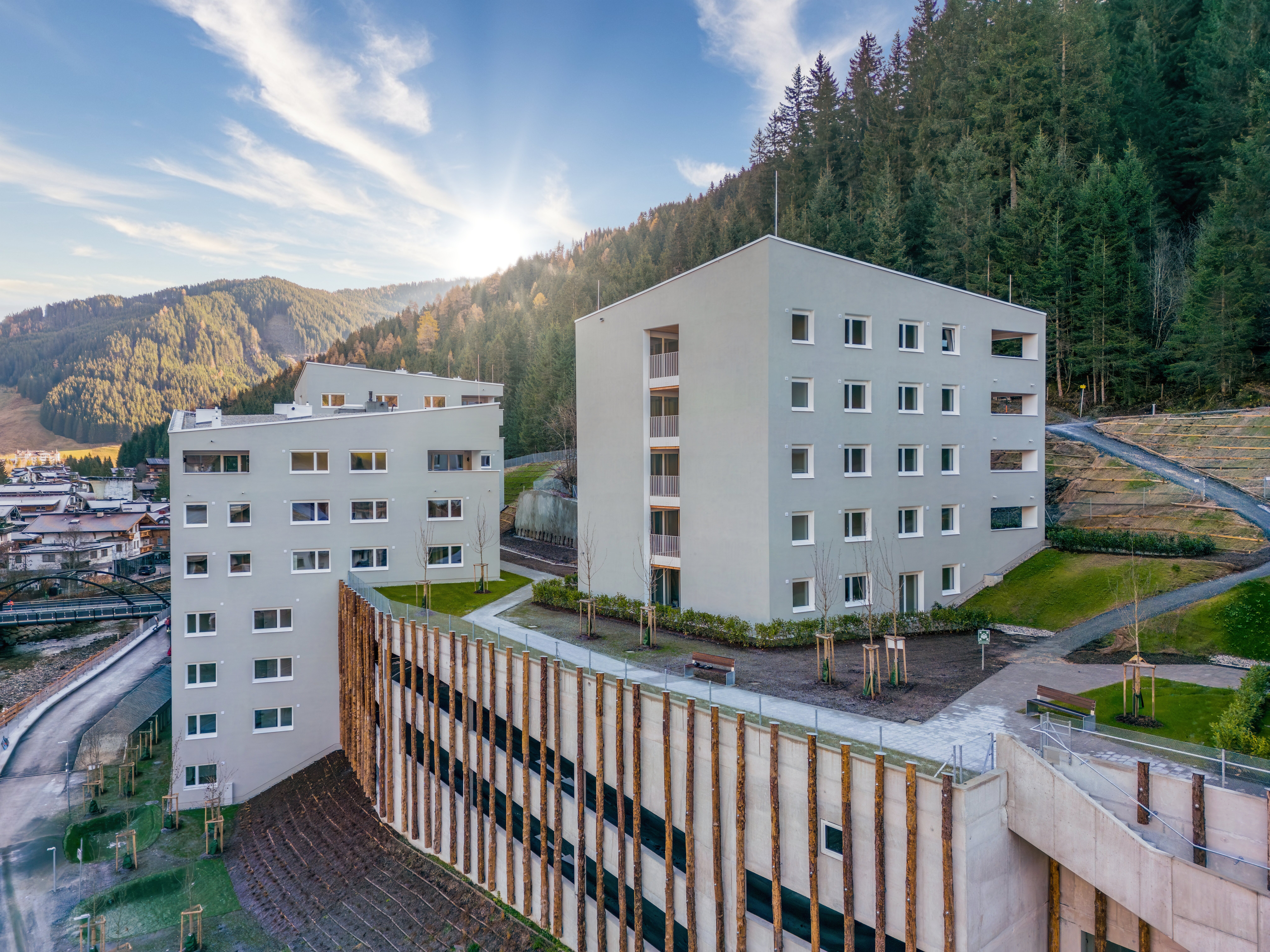 Die NEUE HEIMAT TIROL errichtete in Gerlos eine Wohnanlage mit 11 Mietwohnungen, 14 Mietwohnungen mit Kaufoption, 9 frei finanzierte Eigentumswohnungen sowie 92 Dienstnehmerwohnungen samt einer Tiefgarage mit 236 Stellplätzen.