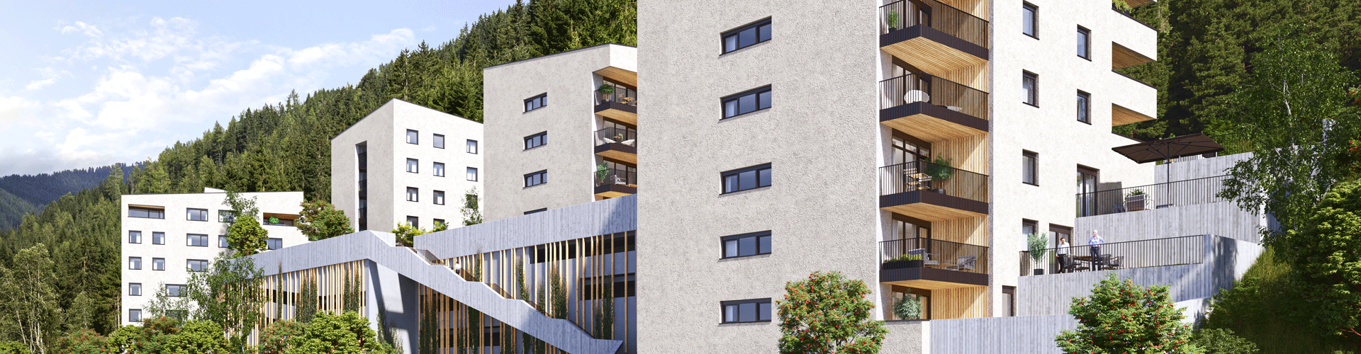 Im Zentrum von Gerlos am derzeit unbebauten bewaldeten Nordhang über dem Gerlosbach werden 236 PKW-Stellplätze, 9 frei finanzierte Eigentumswohnungen, 14 geförderte Mietwohnungen mit Kaufoption, 11 geförderte Mietwohnungen und 92 Dienstnehmerwohnungen errichtet.