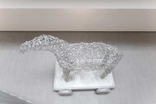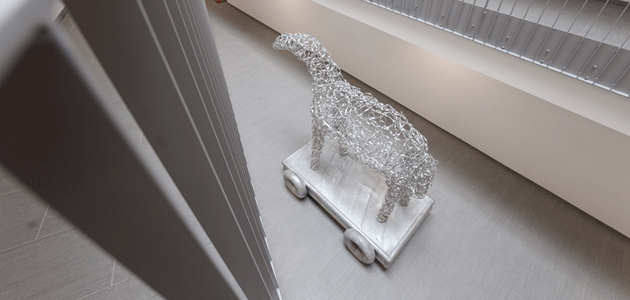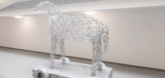 Das mysteriöse und irritierende Pferdeobjekt im Hausgang der Wohnanlage soll bei allen Bewohner:innen und Betrachter:innen Staunen, Verwunderung, Neugierde, Nachdenklichkeit, Freude und ein kleines Lächeln im ernsthaften Alltag hervorrufen.