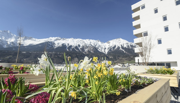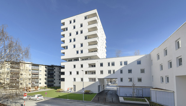 Die NEUE HEIMAT TIROL errichtete im Zuge der Neugestaltung der alten Südtiroler Siedlung in Innsbruck, Pradler Saggen, im ersten Bauabschnitt eine moderne Wohnanlage mit 57 Mietwohnungen, einer Arztpraxis und Tiefgarage.