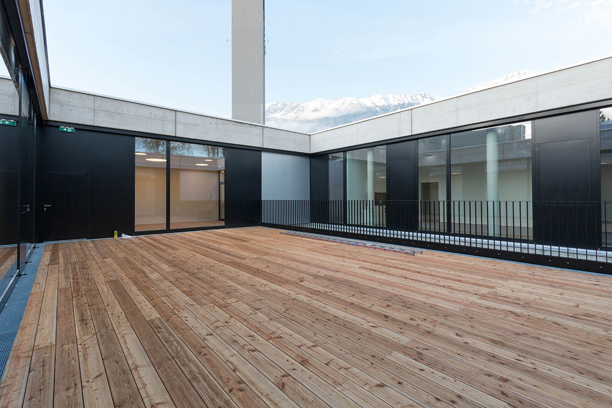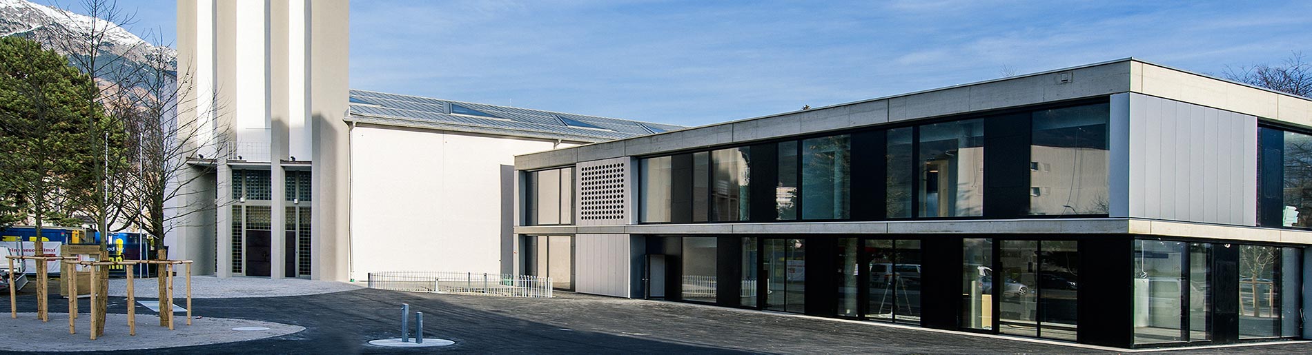 Die NEUE HEIMAT TIROL errichtete im ersten Bauabschnitt in Innsbruck – St. Paulus ein Sozialpastorales Zentrum (Pfarrwidum, Sakristei, Jugendzentrum und Café) samt gemeinsam genutzter Tiefgarage.