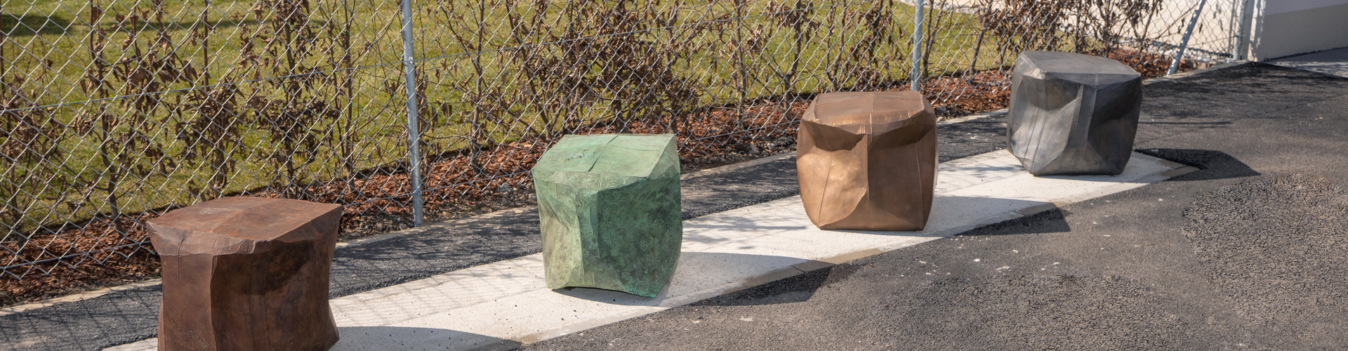 Die Oberflächen der exakt gleichen Güsse werden so behandelt, dass sie eine unterschiedliche Patina – also Alterung der Oberfläche entwickeln. Manche bilden einen rötlichen, andere einen grünlichen Ton oder werden geschwärzt. Die weiteren Abweichungen entstehen durch unterschiedliche Aufstellungen und Drehungen. Die Schachtelgruppe ist wie ein Suchbild oder Vexierspiel, bei dem man durch Vergleichen Ähnlichkeiten und Unterschiede finden oder durch Abtasten begreifen kann.