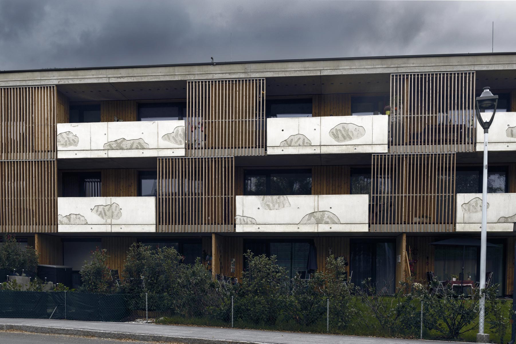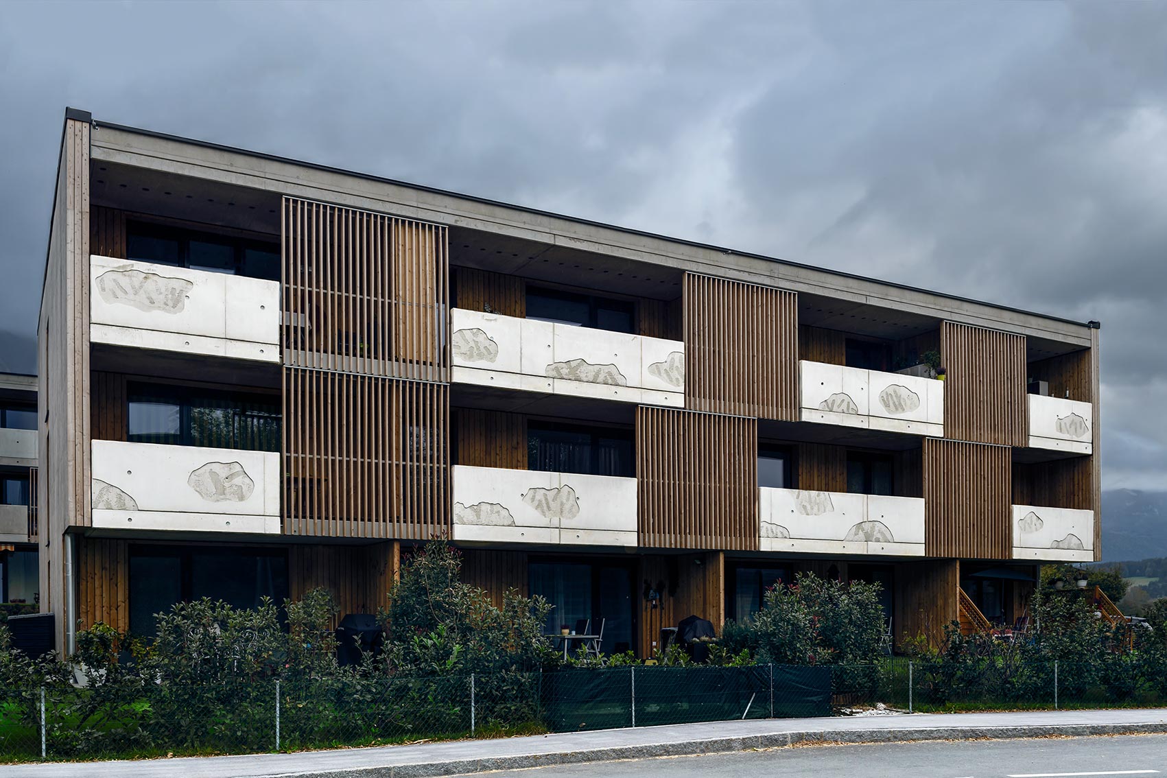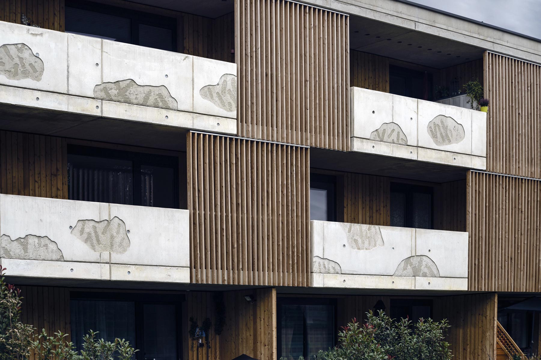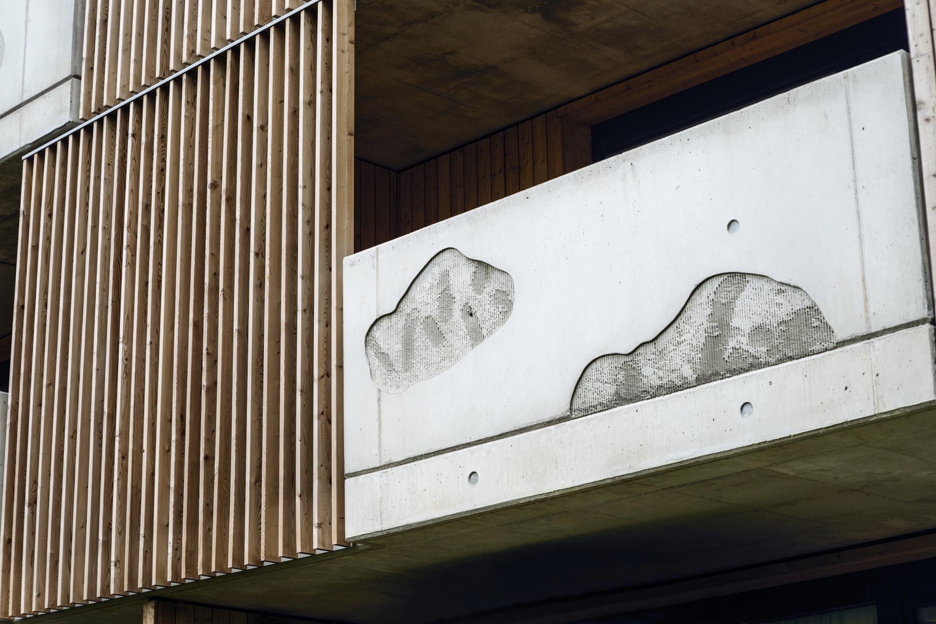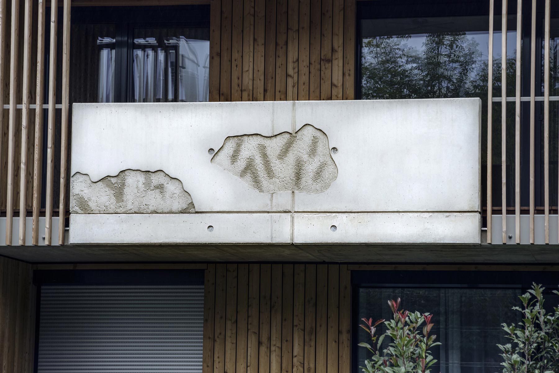 Stefan Klampfer orientierte sich bei seiner künstlerischen Auseinandersetzung mit der Gestaltung der Balkonelemente der Wohnanlage in Langkampfen am örtlich gelegenen Nasenbach.