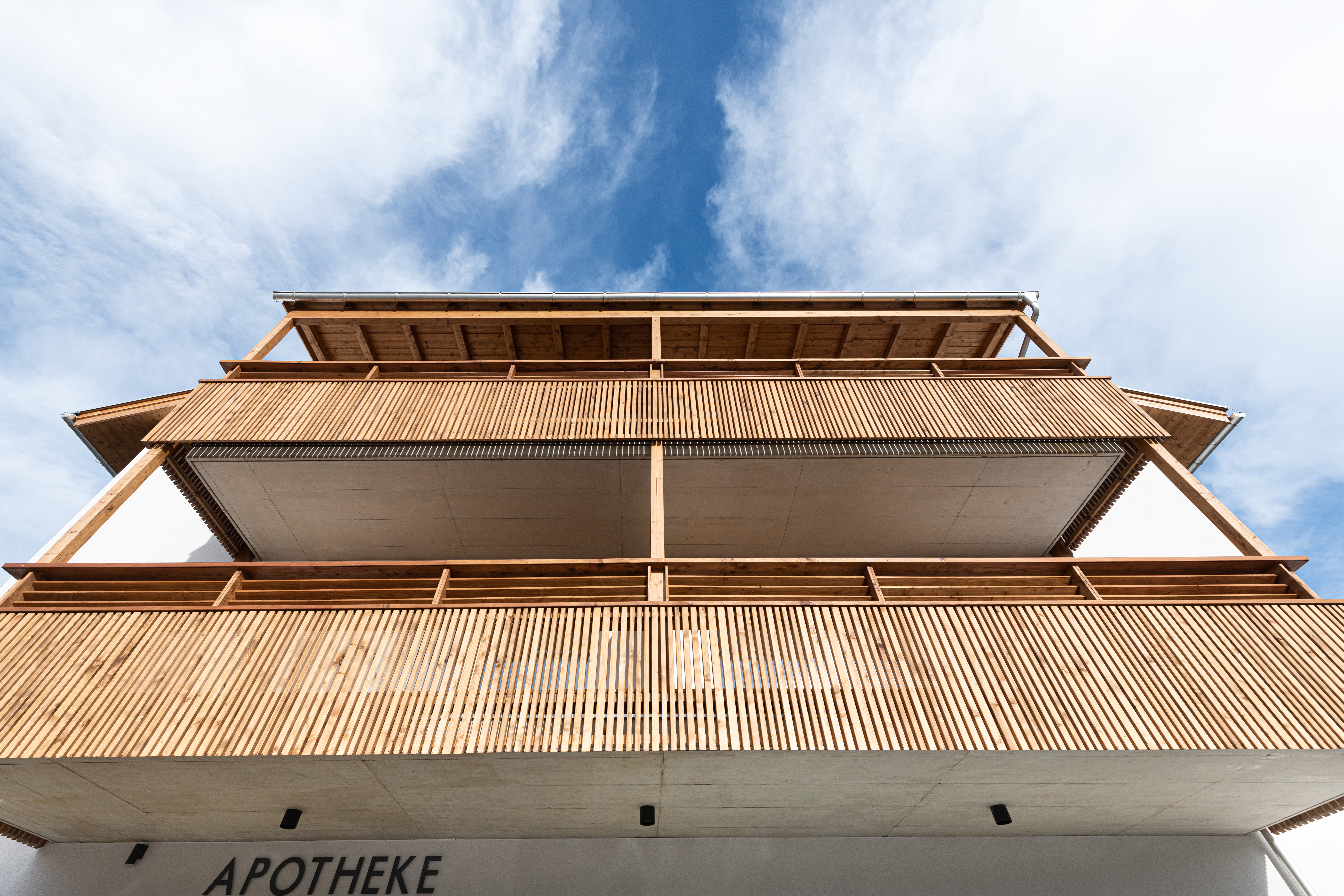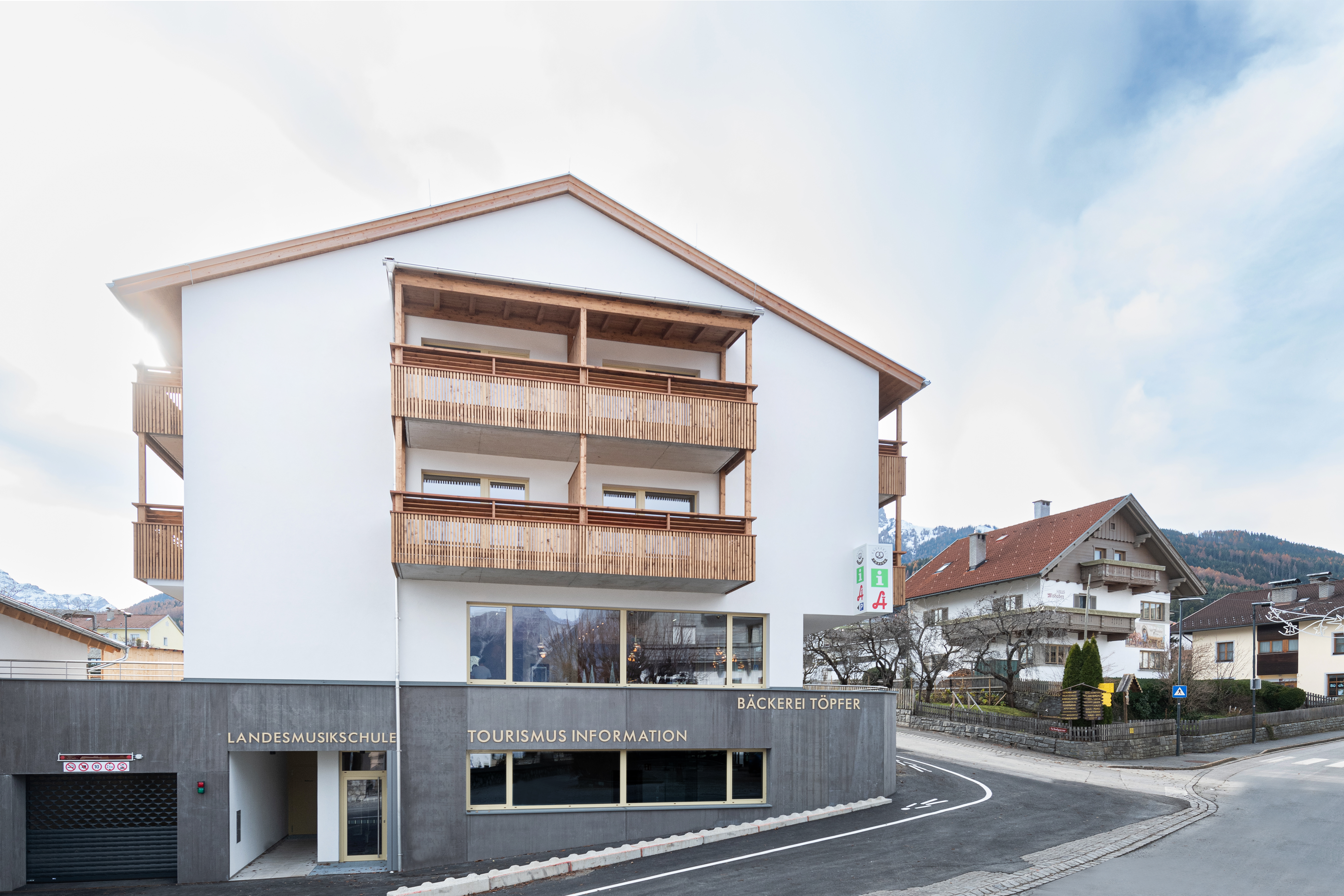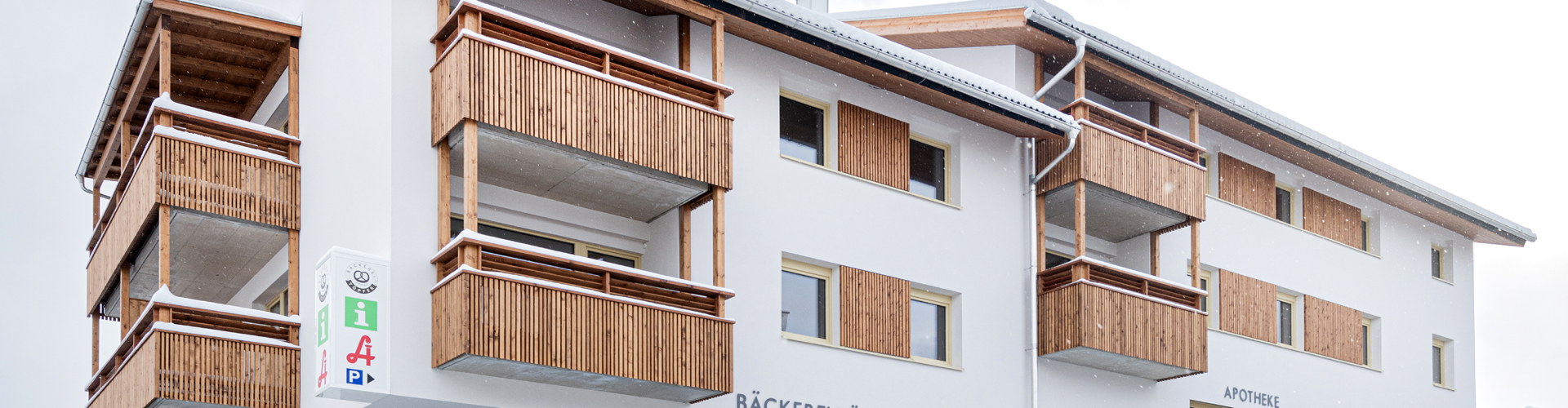 Die NEUE HEIMAT TIROL errichtete in Mutters eine Wohnanlage mit 12 Mietwohnungen, einer Apotheke, einem Cafe/Bäckerei, einer Musikschule und Räumlichkeiten für den Tourismusverband samt Tiefgarage.