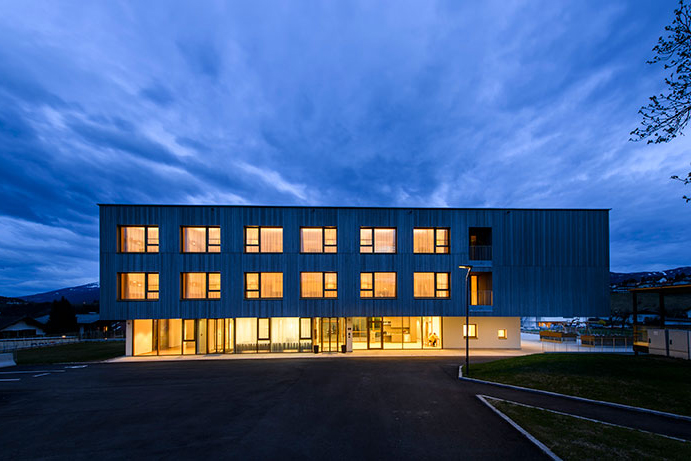 Realisiert wurde das Projekt in Passivhausqualität nach den Plänen des Innsbrucker Architekturbüros Raimund Rainer. Wohnheim und Betreubares Wohnen sind dabei in zwei über eine Brücke miteinander verbundene Baukörper untergebracht. Im Eingangsgeschoß des Wohnheims befinden sich zusätzlich die Räumlichkeiten für die Tagesbetreuung sowie eine Arztpraxis.