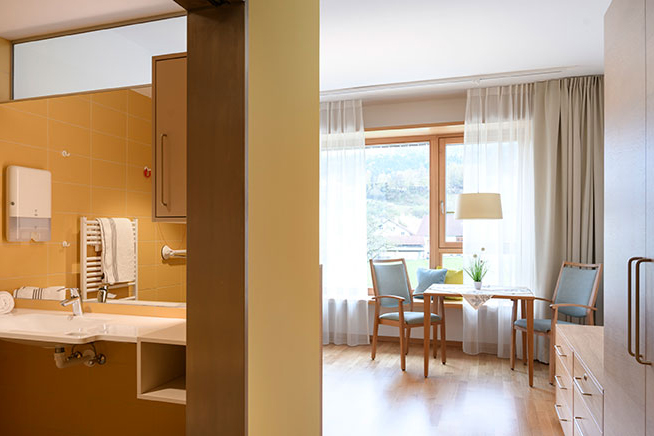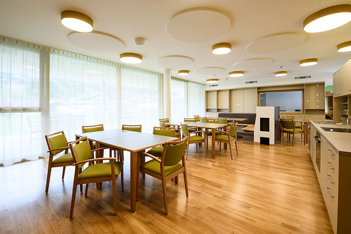 Das neue Wohn- und Pflegeheim befindet sich direkt im Ortszentrum von Natters und ist von großzügigen Grünflächen umgeben. Nach Süden hin steht den Bewohnern ein eigens angelegter Park zur Verfügung.