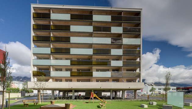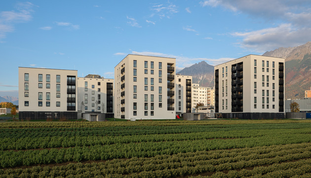 Die NEUE HEIMAT TIROL errichtete in Rum, Steinbockallee, eine Wohnanlage mit 64 Mietwohnungen samt überdachten Stellplätzen.