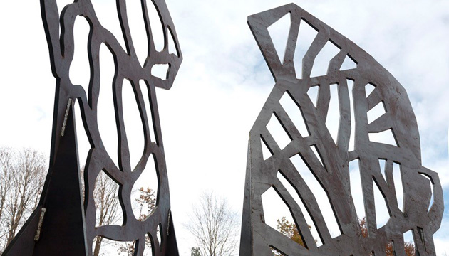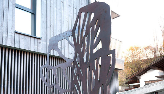 Neben der Begegnung zwischen den Menschen ist aber auch die Beziehung Mensch-Natur ein zentrales Thema. Die Idee des „Zusammenwachsens“ nehme ich auch in dieser Beziehung auf und pflanze rund um die Skulptur alpine Waldreben (Clematis) als winterharte und robuste heimische Kletterpflanze. Die Clematis steht hier für das Unvorhergesehene, Spontane. Sie windet sich um die beiden Kopfhälften ganz nach ihrem eigenen Plan, schafft Verbindungen zwischen beiden Teilen. Eine Symbiose, in der der Mensch die Stütze für die Natur ist, die ihrerseits auf ihn zurückwirkt und nach und nach die Menschen zu einem Ganzen zusammen wachsen lässt.