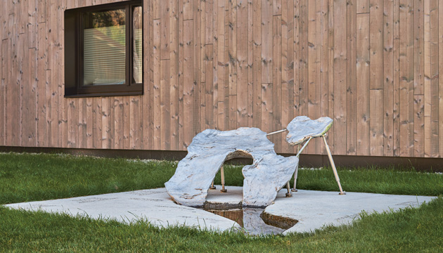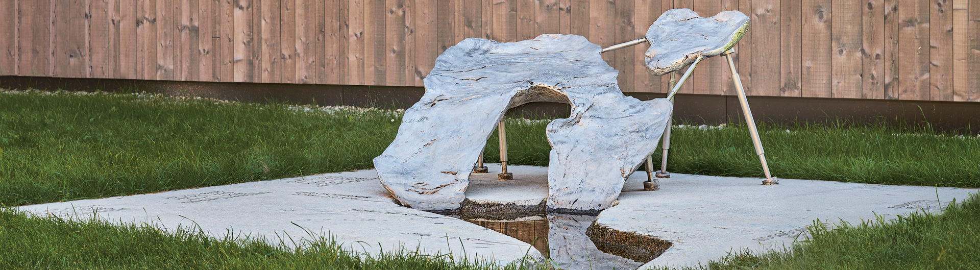 Die Künstlerin Johanna Tinzl konzipierte für die Wohnanlage in Umhausen eine Skulptur, die das Gletschersterben im Gemeindegebiet von Umhausen thematisiert.