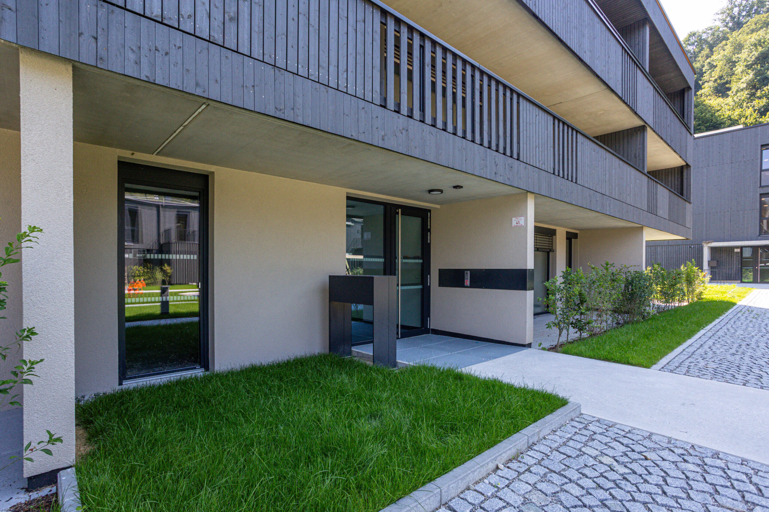 Es wurdeeine Wohnanlage mit 5 Baukörpern, einer gemeinsamen Tiefgarage, Freiparkplätzen und einem unterirdischen Müllsammelsystem errichtet.