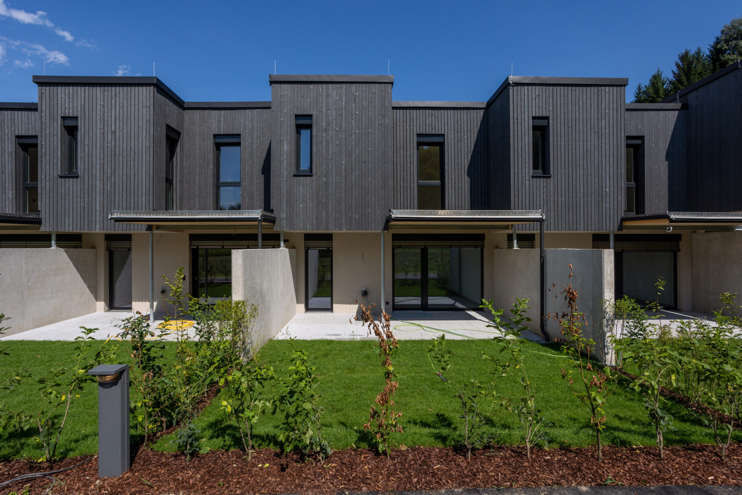 Die Häuser werden in Holz-Hybridbauweise mit Betonstützen bzw. tragenden Wohnungstrennwänden errichtet, wobei die oberste Geschoßdecke in Holz ausgeführt wird.