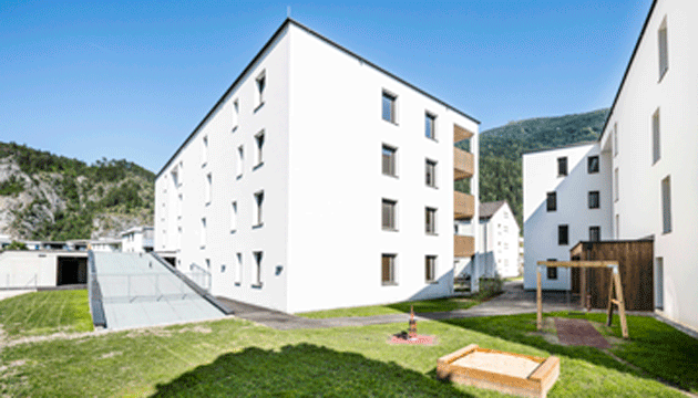 Die NEUE HEIMAT TIROL errichtete in Zams (Südtiroler Siedlung, 7. BA) eine Wohnanlage mit insgesamt 38 Wohnungen samt Tiefgarage.