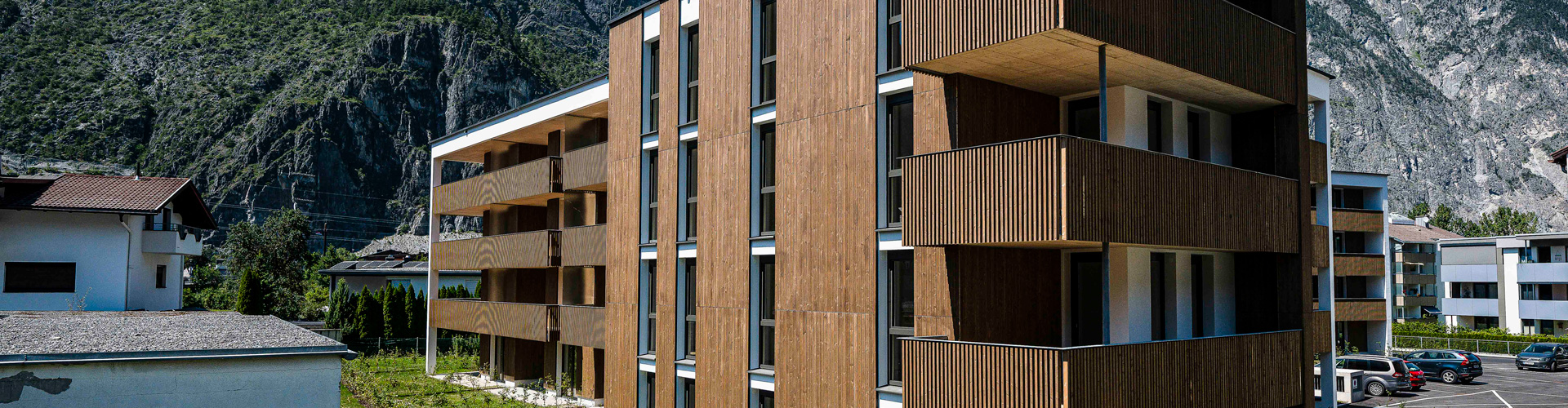 Die NEUE HEIMAT TIROL errichtete in Zams – Südtiroler Siedlung, 7. Bauabschnitt – eine Wohnanlage mit 38 Mietwohnungen samt Tiefgarage.